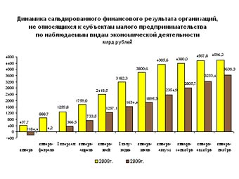 В ходе 2009 года отрыв в объеме сальдированной прибыли от аналогичных показателей предыдущего года стабильно сокращался. Так, в первом квартале 2009 года предприятия получили 29,1 процента от прибыли 2008-го года, во втором - 66 процентов, а в третьем - 97,8 процента.