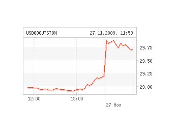 Резкое падение курса рубля по отношению к доллару и евро (более чем на 36 копеек с начала торгов на ММВБ) вызвано опасениями инвесторов о возможном дефолте эмирата Дубай, 26 ноября попросившего кредиторов о полугодовой отсрочке по выплатам долгов госфонда Dubai World.