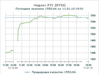 Российские фондовые индексы начали год бурным ростом. По итогам торговой сессии 11 января индекс РТС увеличился на 7,51 процента до 1553 пунктов, тогда как основной показатель ММВБ прибавил 5,46 процента, достигнув 1445 пунктов.