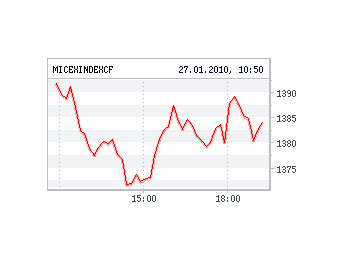 Российские фондовые индексы 27 января открылись в небольшом минусе, но уже в первые полчаса торгов начали расти. В итоге к 11:00 по московскому времени РТС смог подняться на 0,14 процента до 1446 пунктов, а ММВБ торгуется на уровне предыдущего дня в районе 1385 пунктов.