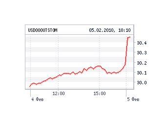 Курс доллара за первые минуты валютных торгов ММВБ 5 февраля вырос почти на 44 копейки до 30,5150 рубля. Американская валюта по отношению к рублю достигла максимума с декабря 2009 года, отмечает Reuters.